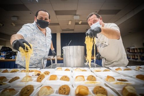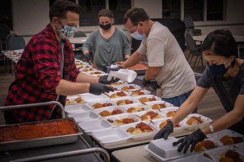 Do you appreciate a good meal? Most everyone does! That's why we get together on the last Thursday of the month to prepare about 200 Pasta meals, box them up, and take them to the homeless Downtown.